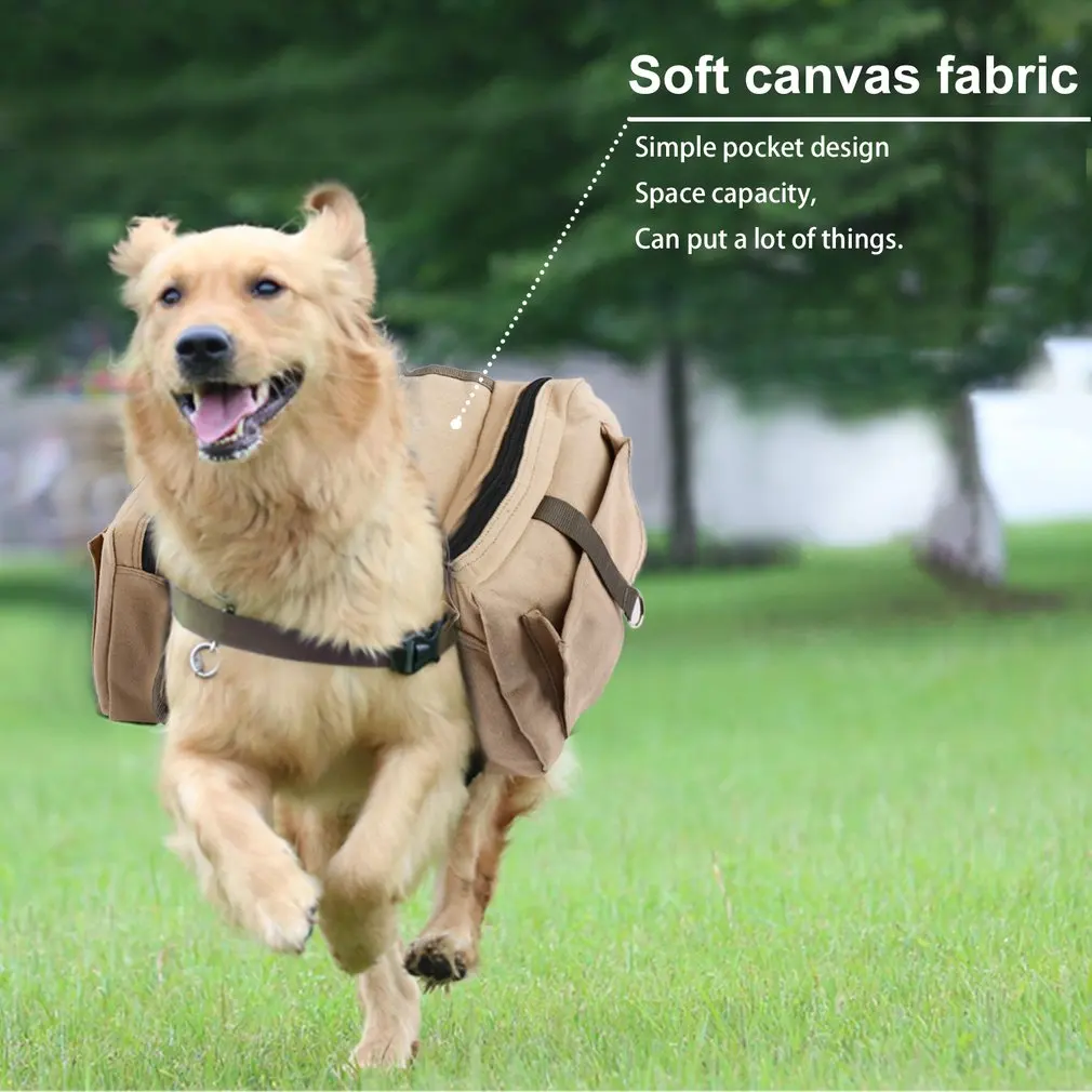 Outad Durable Soft Comfortable Dog Pack Harness Canvas Saddle Bag With Adjustable Strap For Outdoor