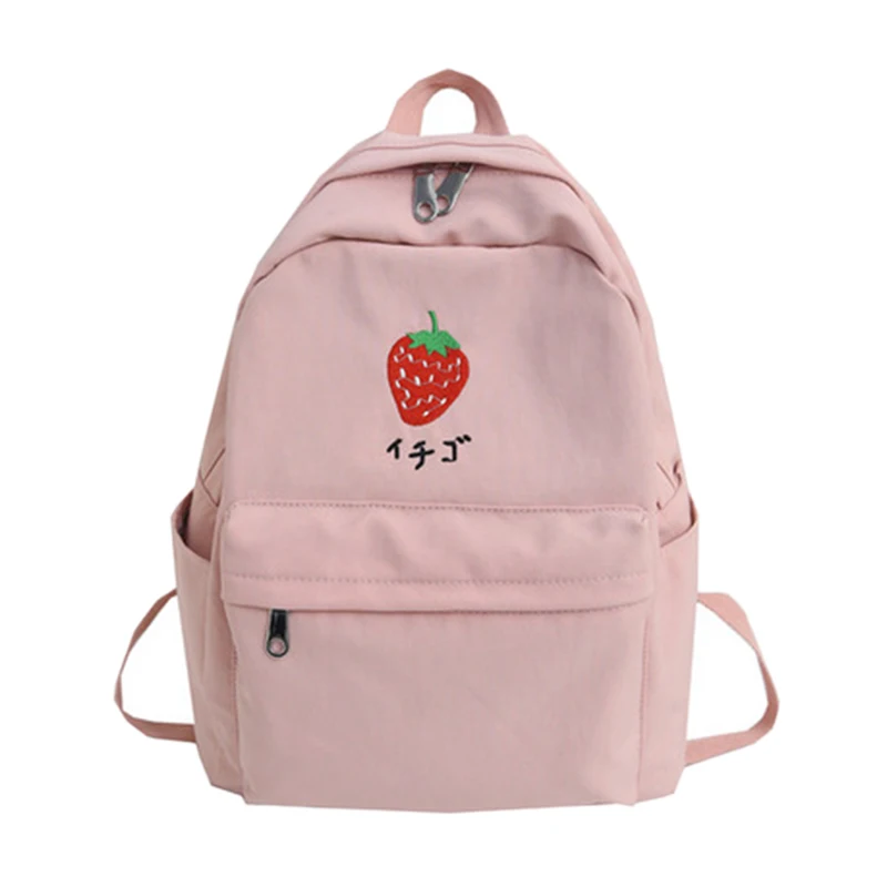 New Embroidery Canvas Bag Little Fresh Waterproof Nylon Solid Color Backpack Girls Schoolbags