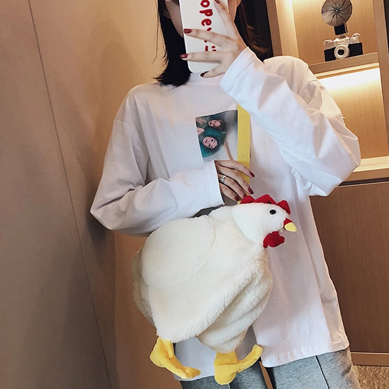 BEAU-Cute Chick Shape Shoulder Bag Plush Ladies Shoulder Messenger Bag Funny Personality Bag