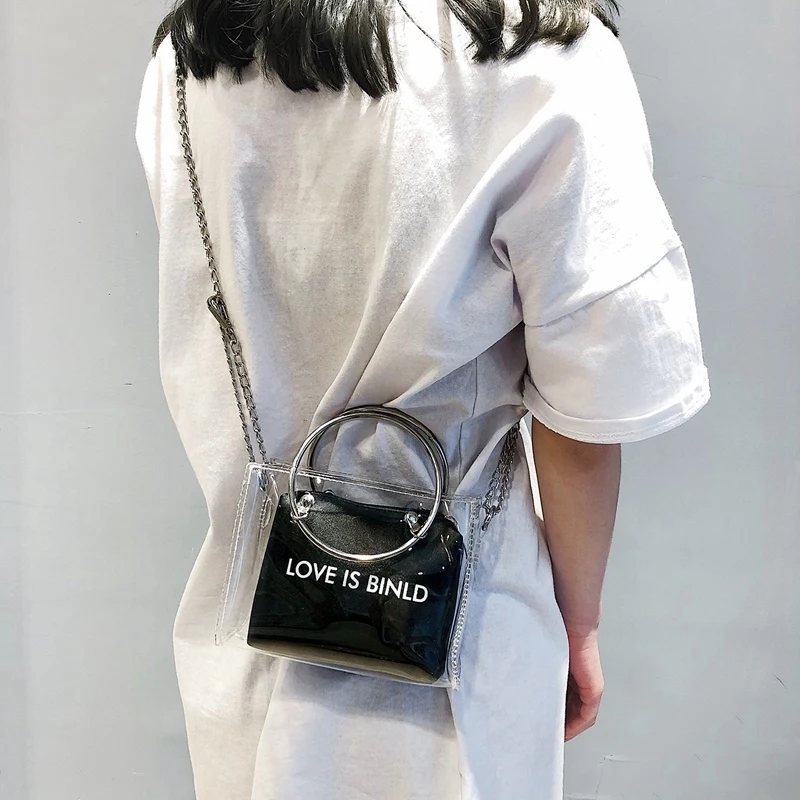 HIGH QUALITY 2Pcs Fashion Women Bag Set Transparent Shoulder Bag+Clutch for Teenage Girls Fashion Jelly Crossbod